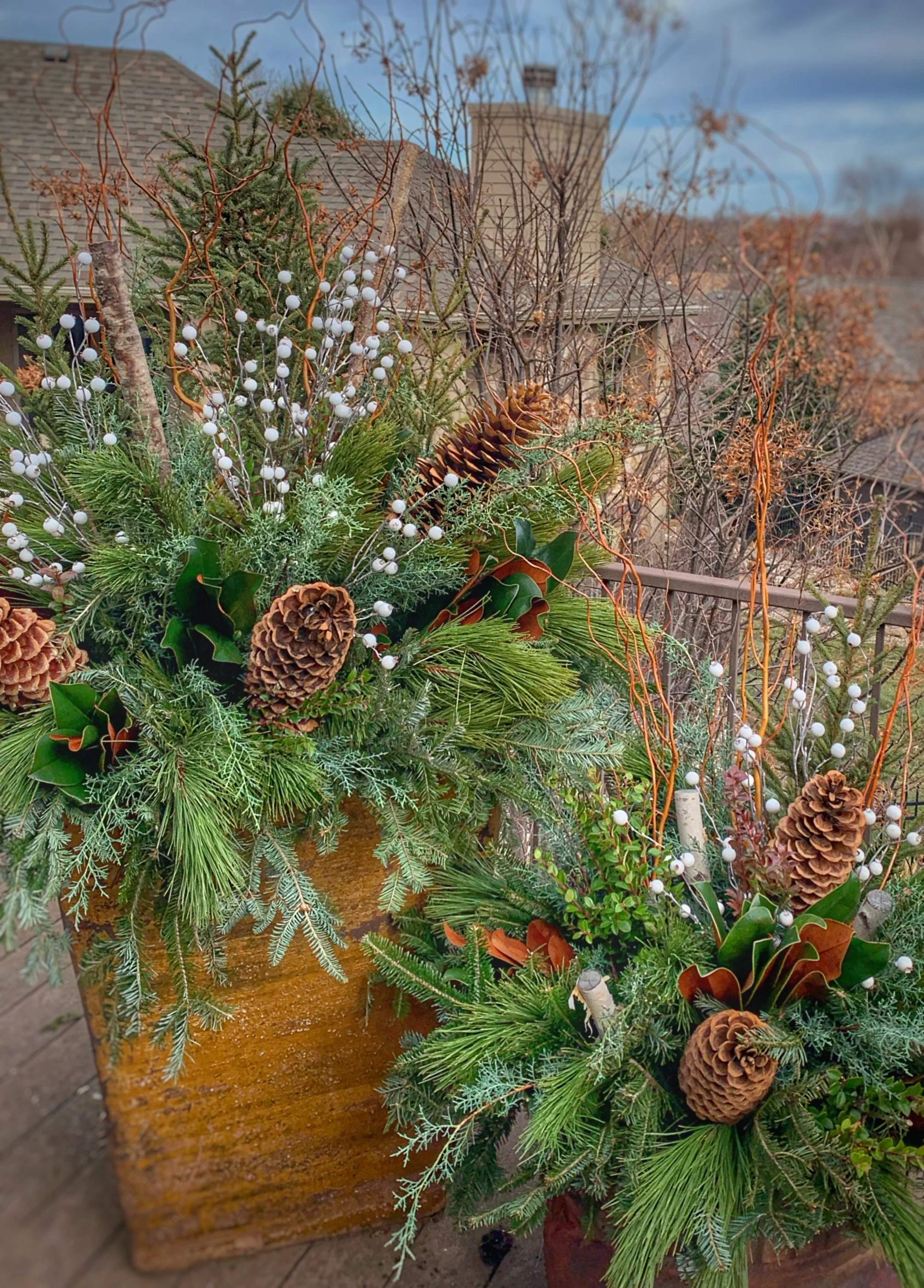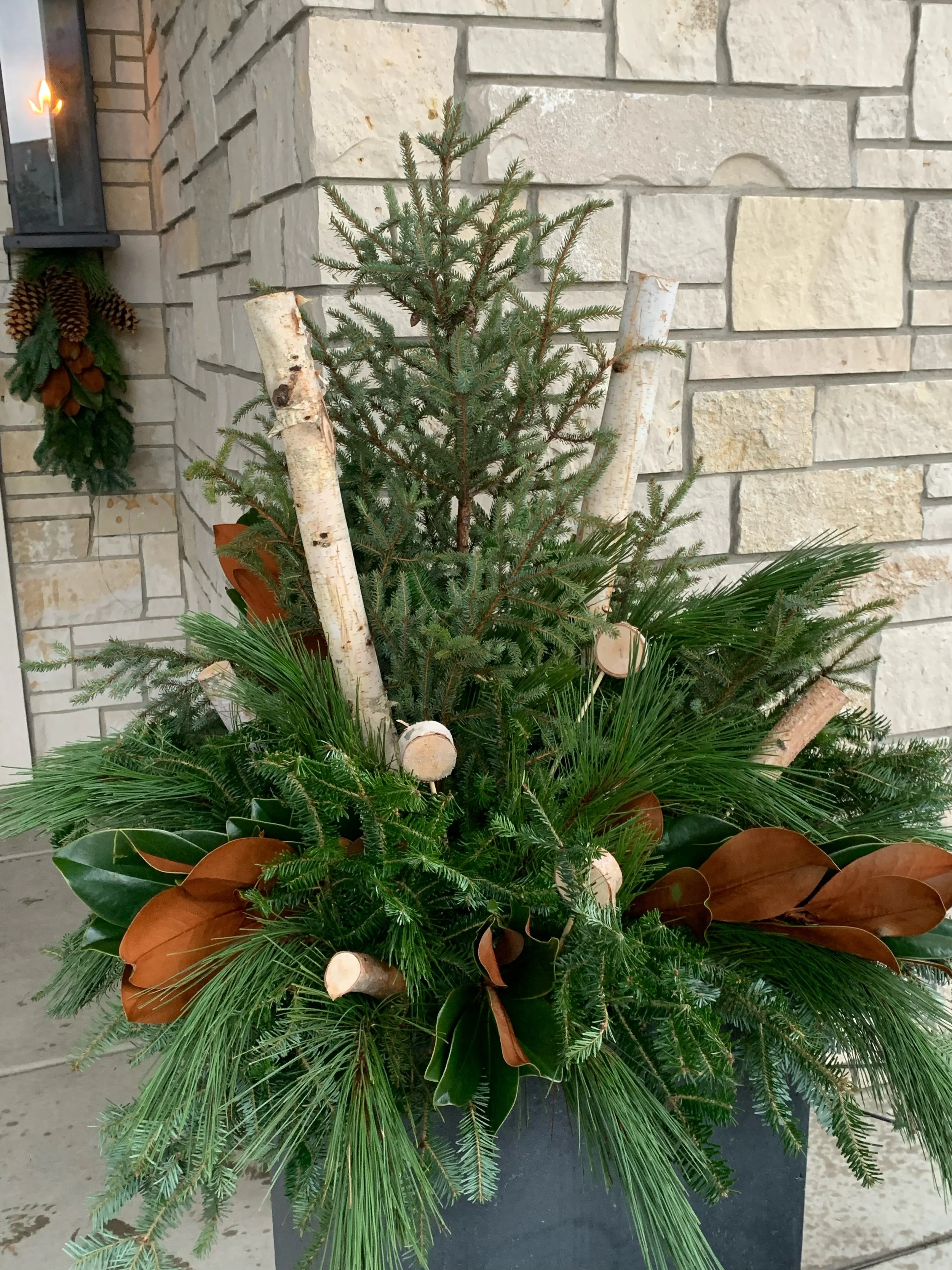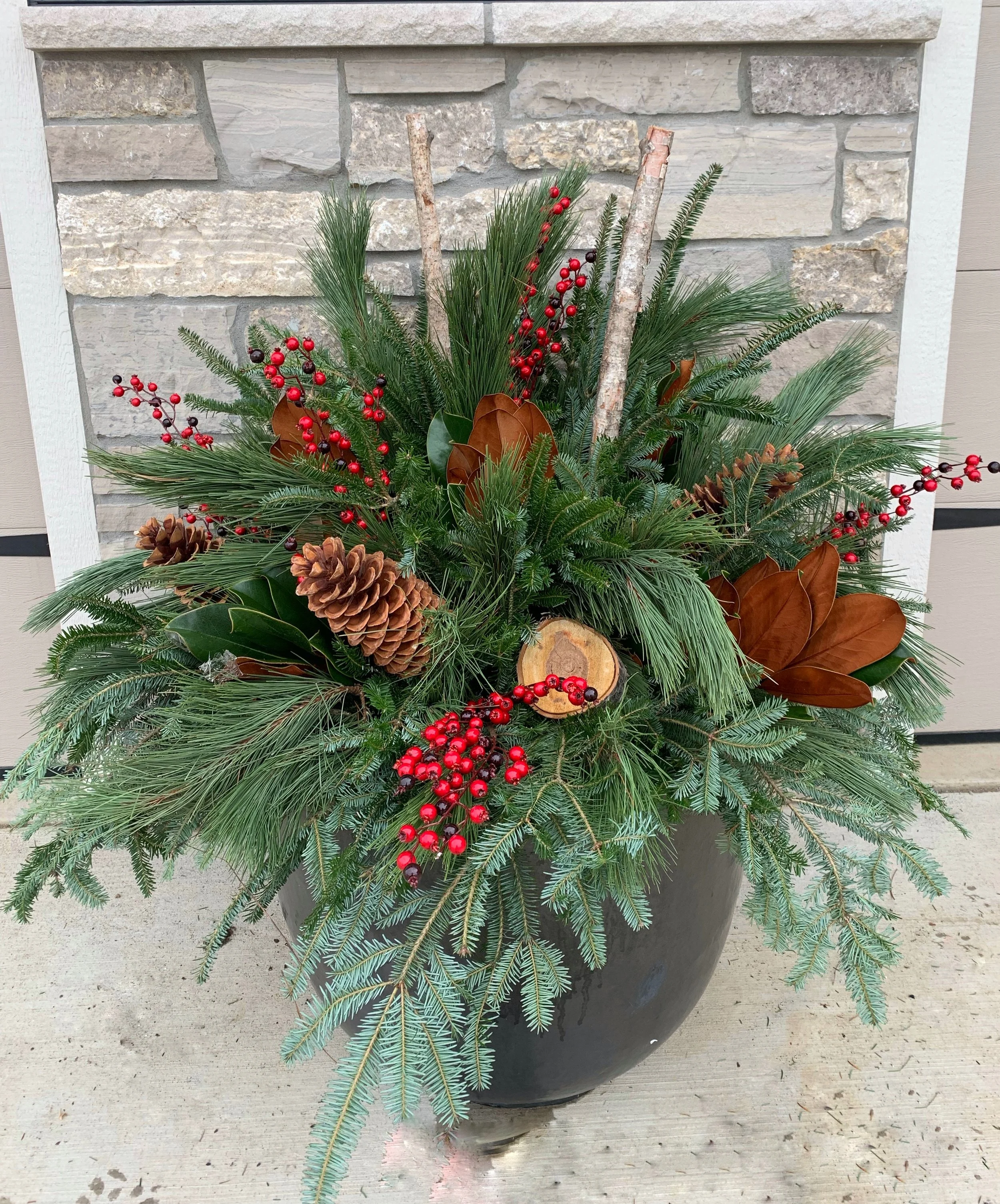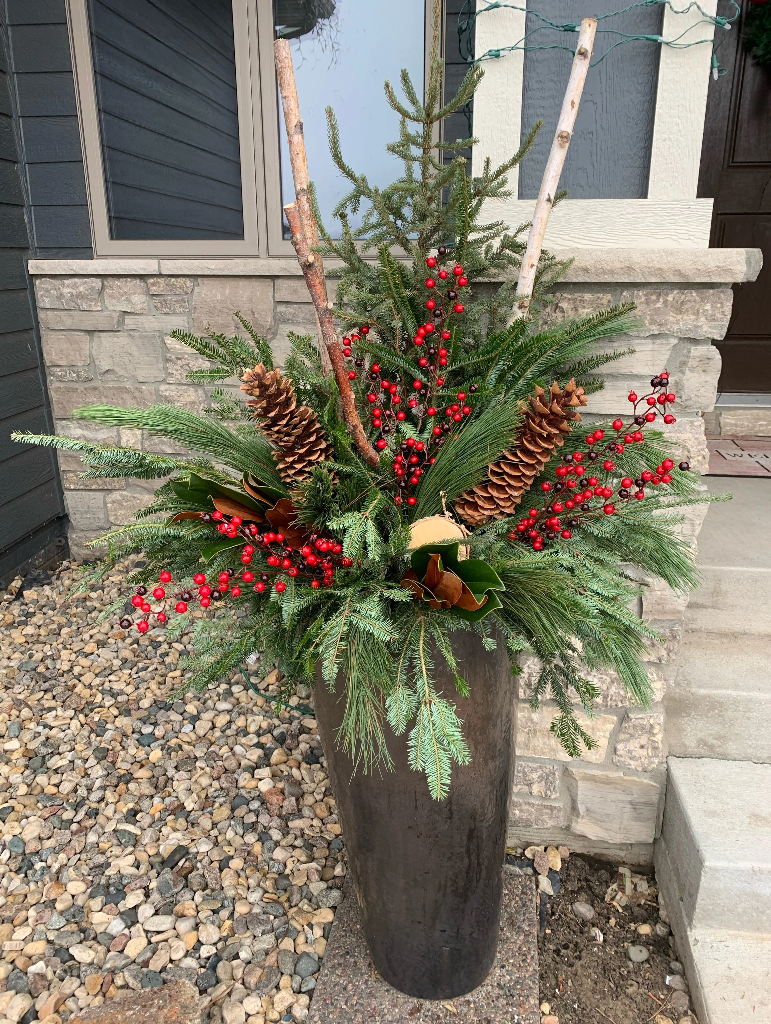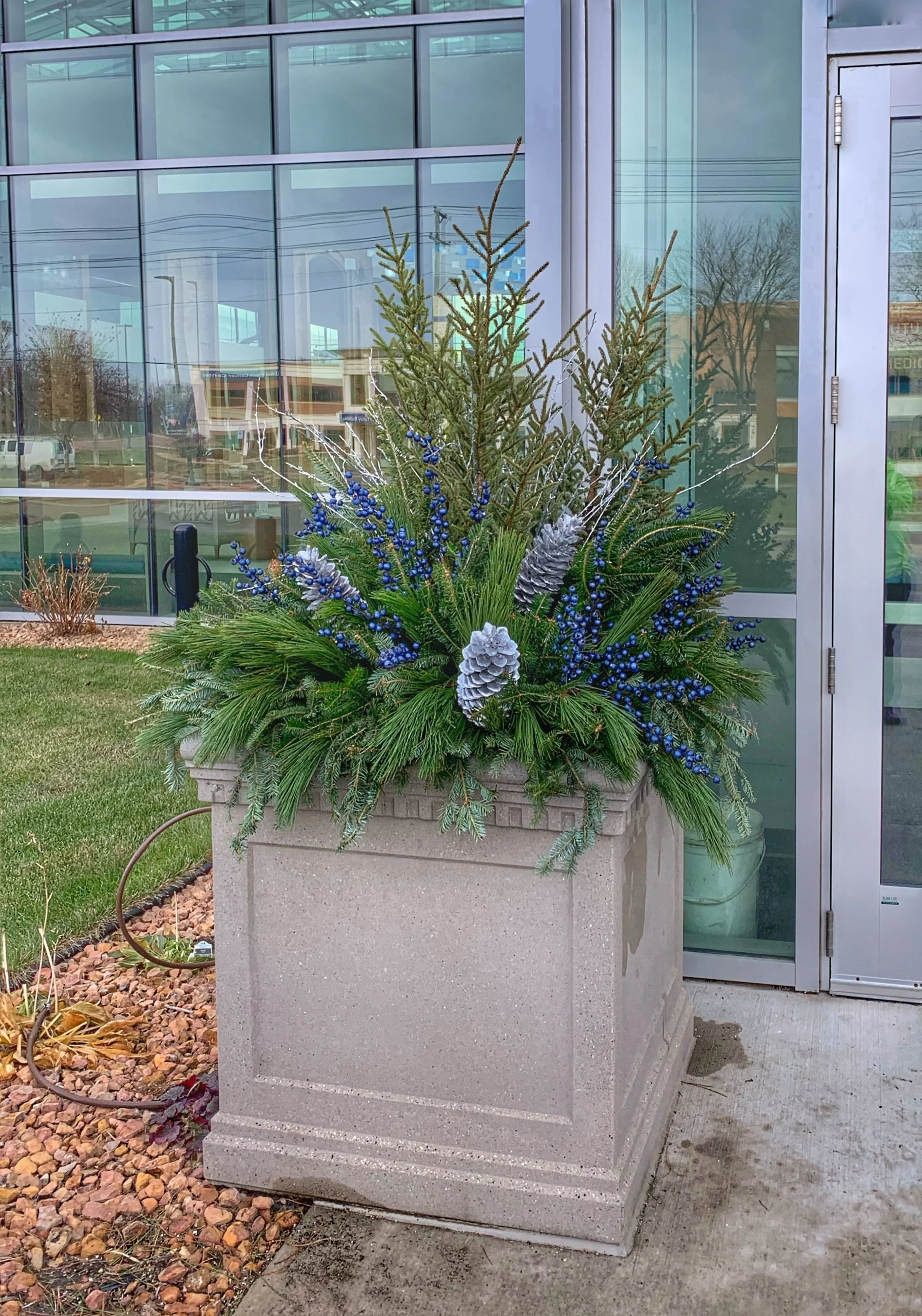 Designed to bring warmth and structure to the quiet months, our winter containers feature evergreens, berries, pinecones, and natural branches. Each arrangement is crafted to last through frost and snow, creating a timeless accent for your entryway or patio.
