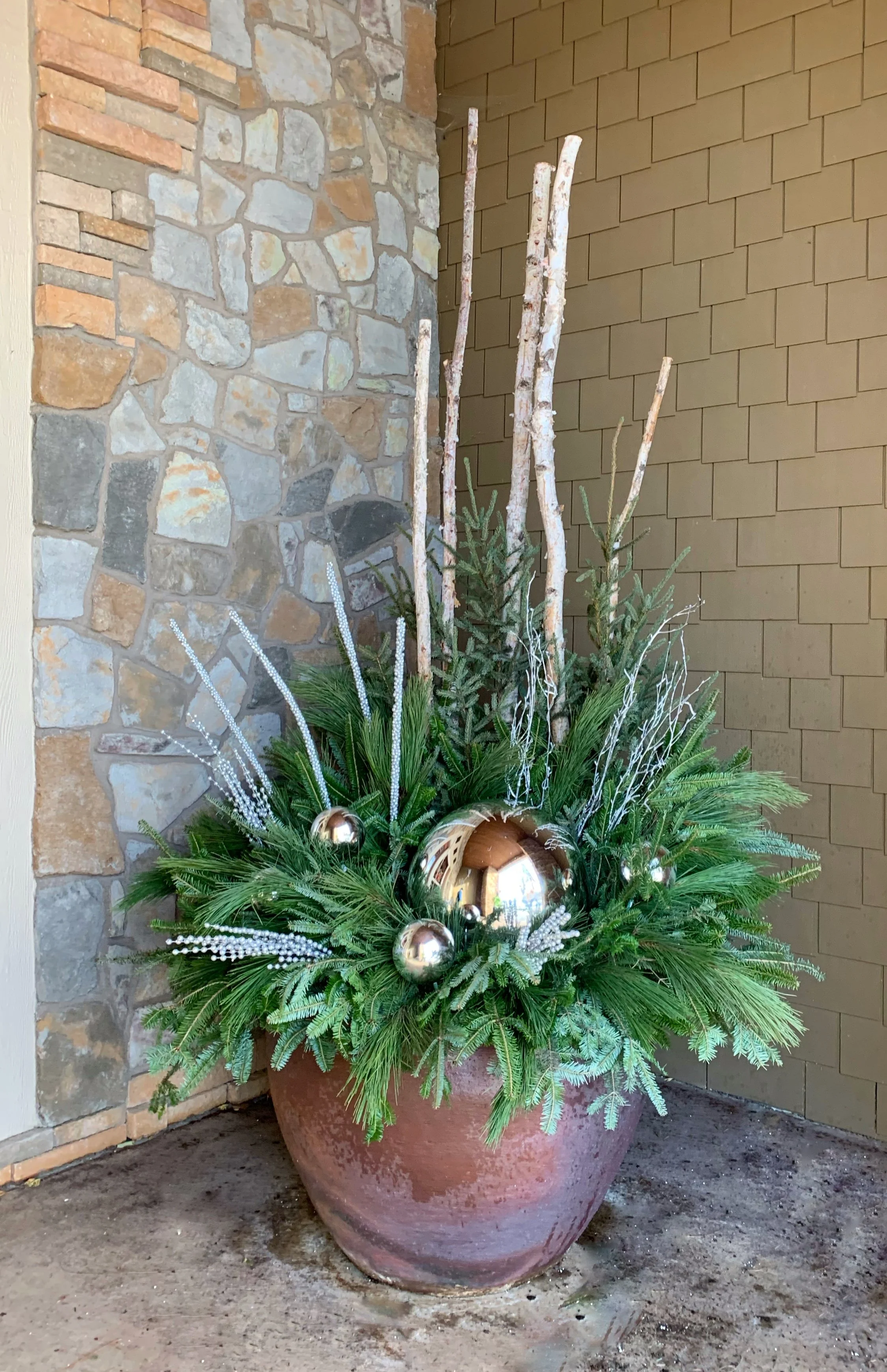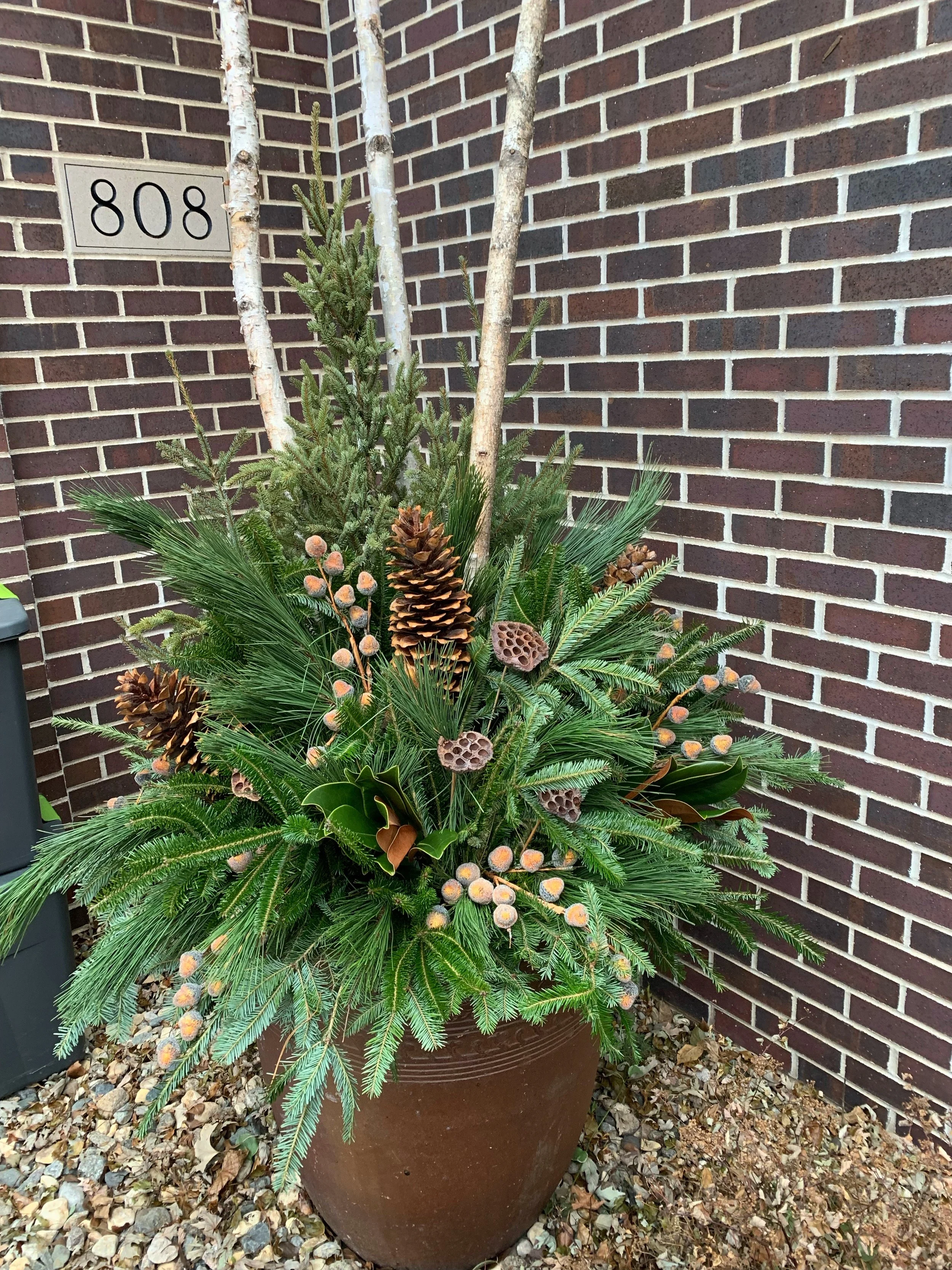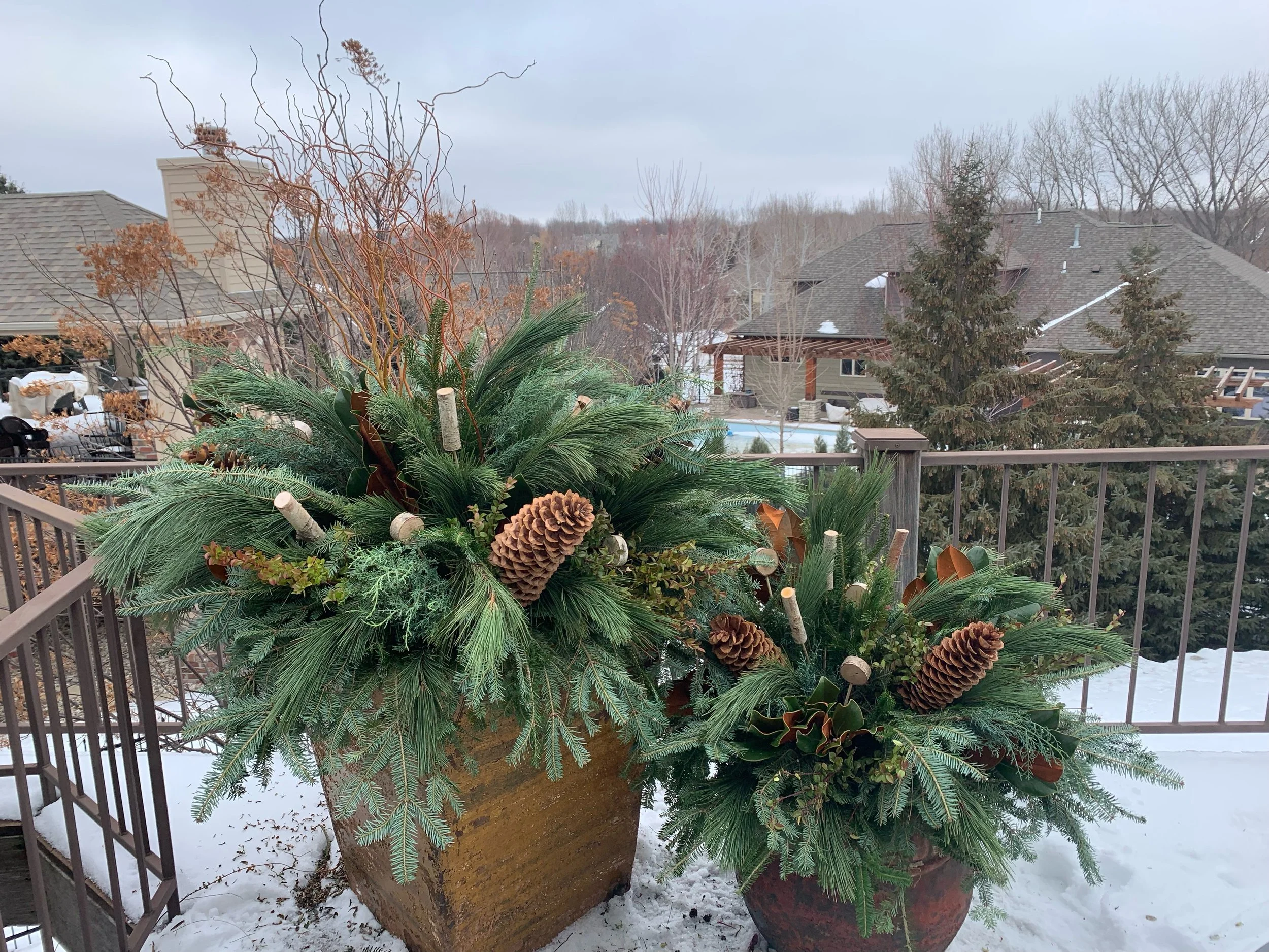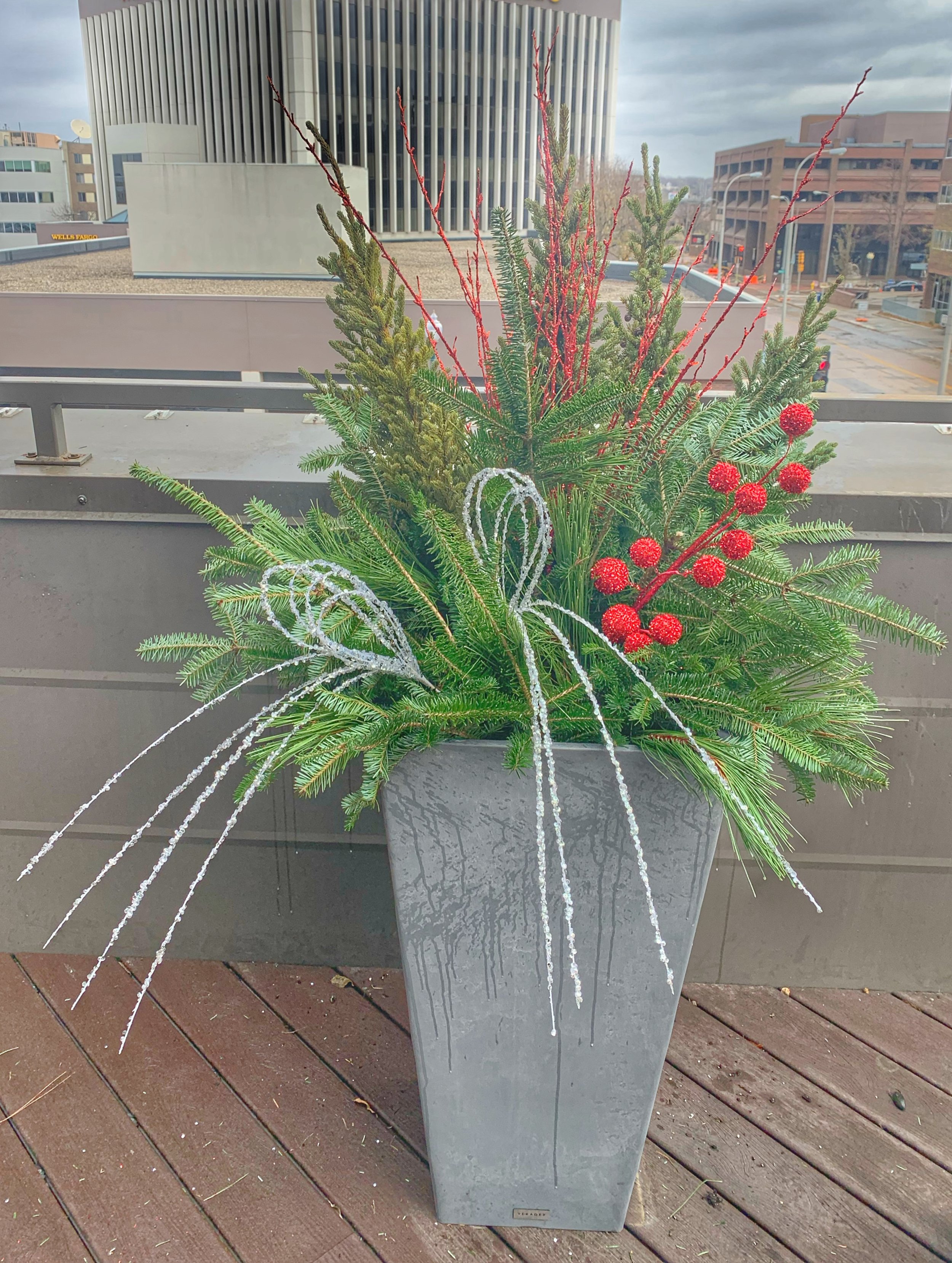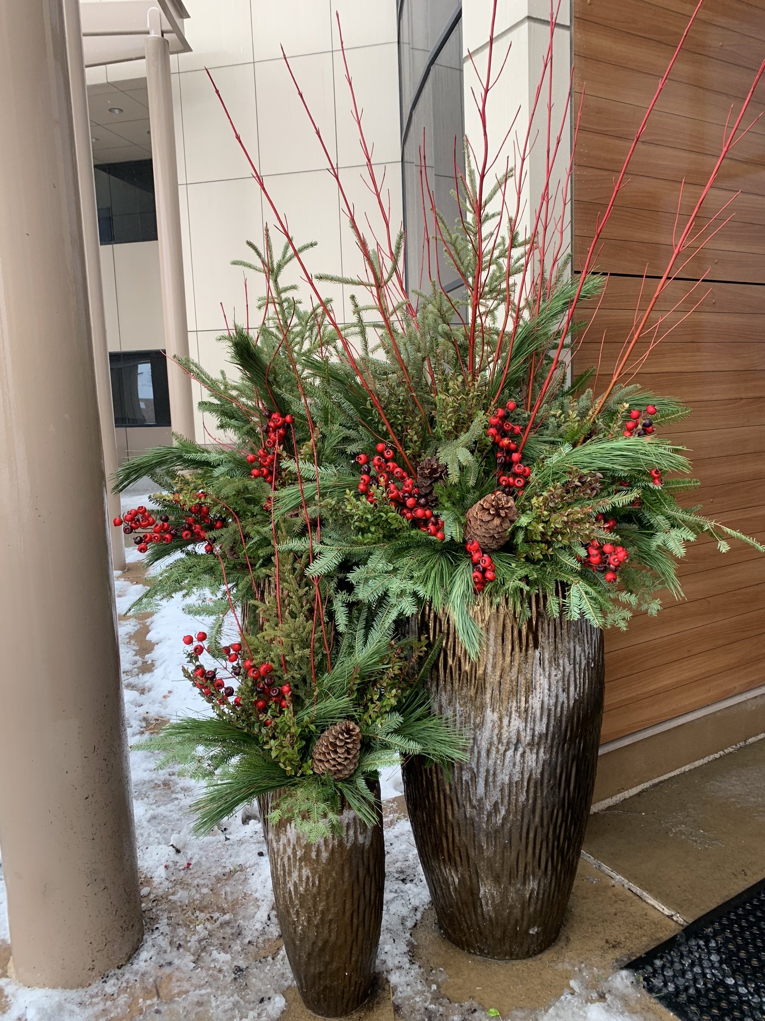 Designed to bring warmth and structure to the quiet months, our winter containers feature evergreens, berries, pinecones, and natural branches. Each arrangement is crafted to last through frost and snow, creating a timeless accent for your entryway or patio.
